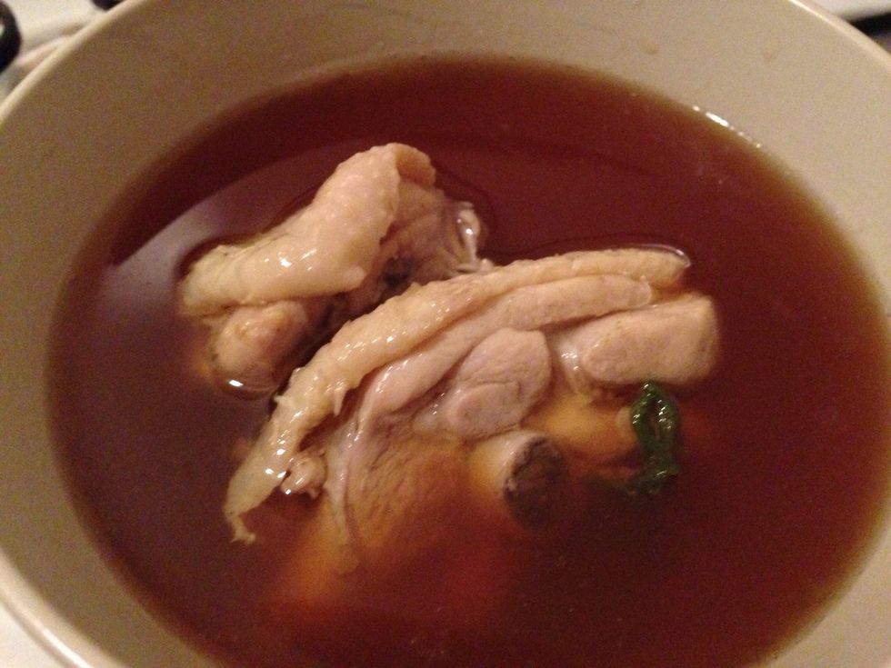 Boil. Boil. Boil and keep boiling for 30 mins. Add salt to taste. At this point, if you think the taste of alcohol is too strong, you can keep boiling the soup until alcohol get burned off.