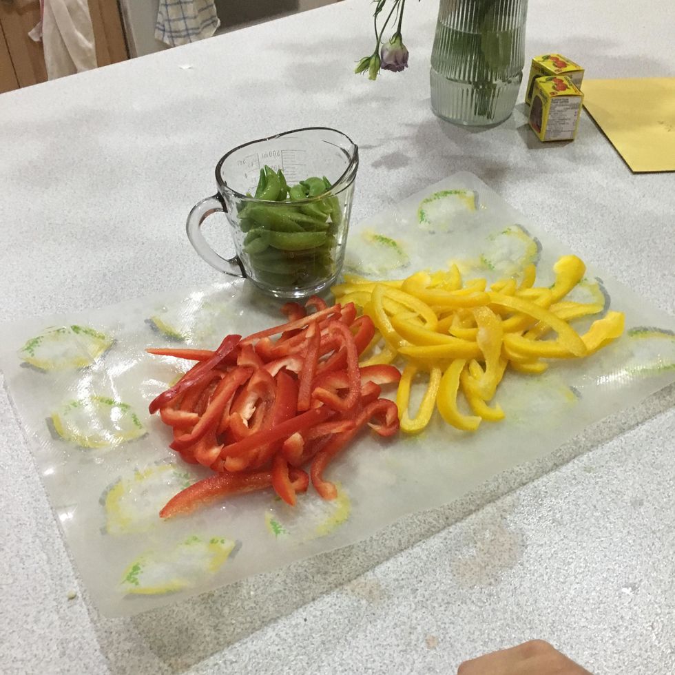 Chop 6 cloves of garlic. You will only be using 3 for the sauce, save the rest for the vegetables.