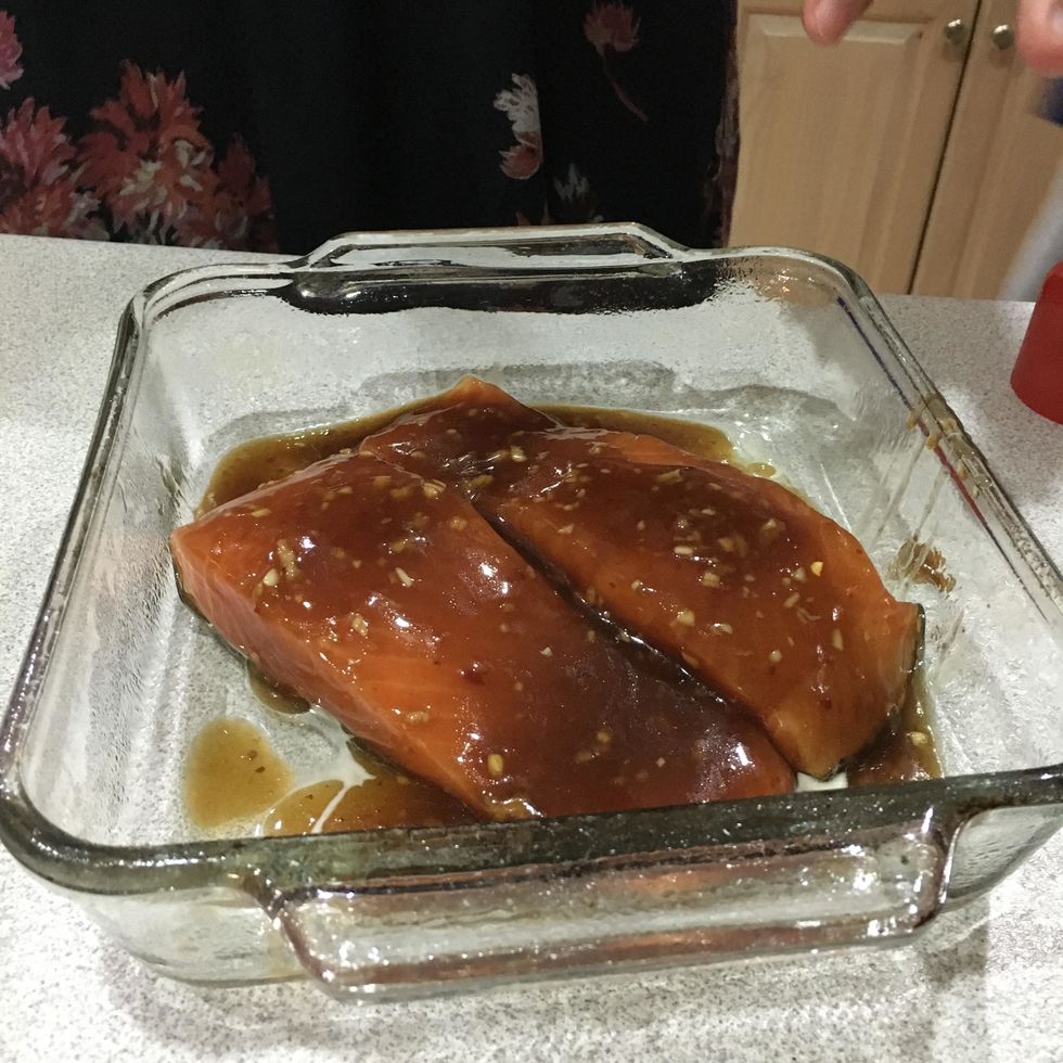 Ensure the sauce is covering the salmon entirely then refrigerate for 1 hour