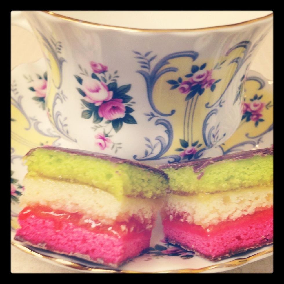 Pour pink batter into pan (spread with offset spatula), bake 8 to 10 minutes, until just set. Do not over cook! Repeat with white and green batters, and set aside to cool on racks, about 15 minutes.