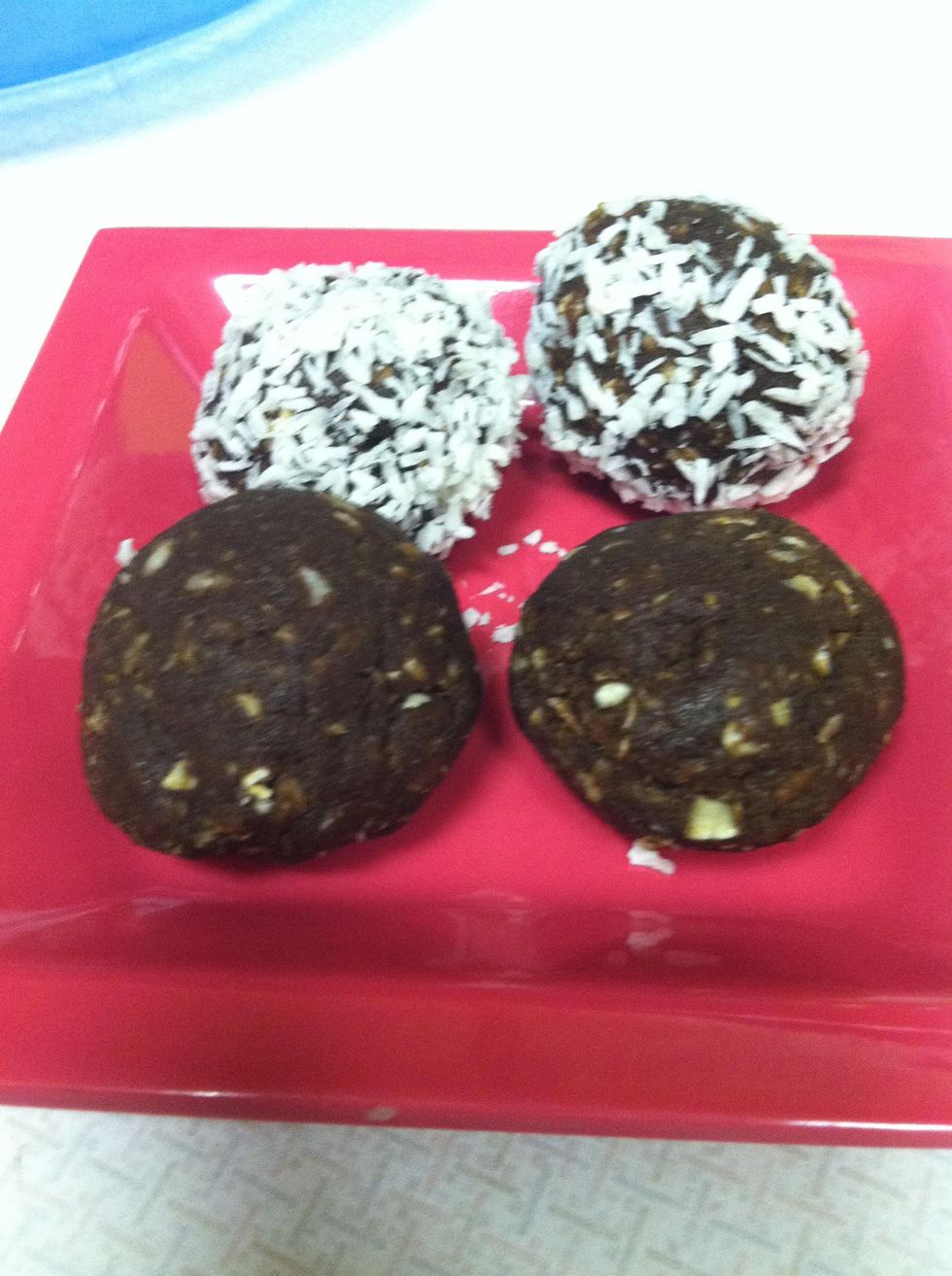 Roll in shredded coconut if you choose to. I think it looks pretty :) you could also roll it in cacao powder.