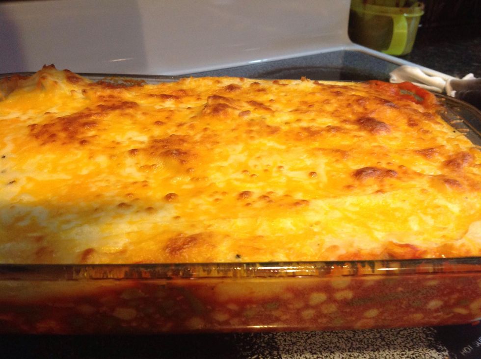 Add one 42 ounce can of tomato soup. And preheat the oven to 375.
