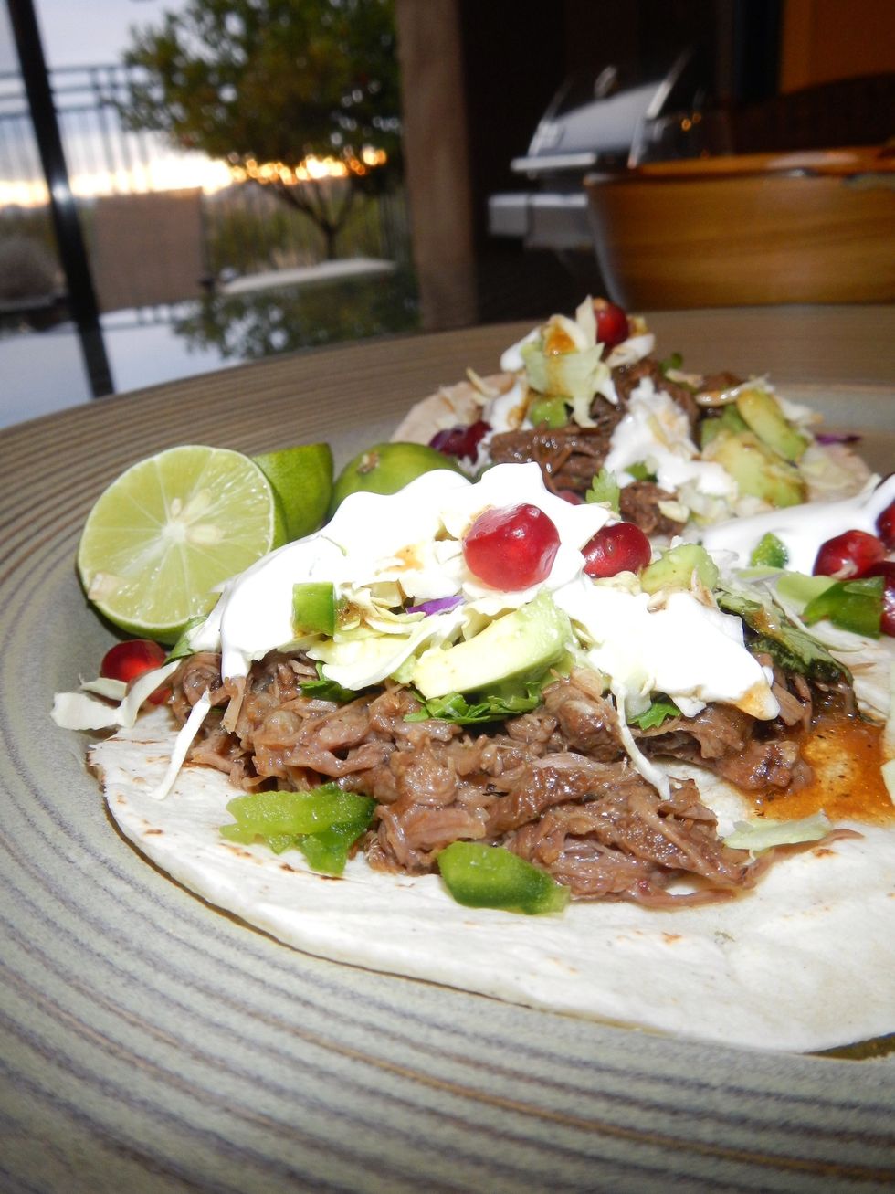 Add to au jus in pot. Stir to combine and thicken. Once thickened, remove to a serving bowl. Add the shredded meat back into the pot.