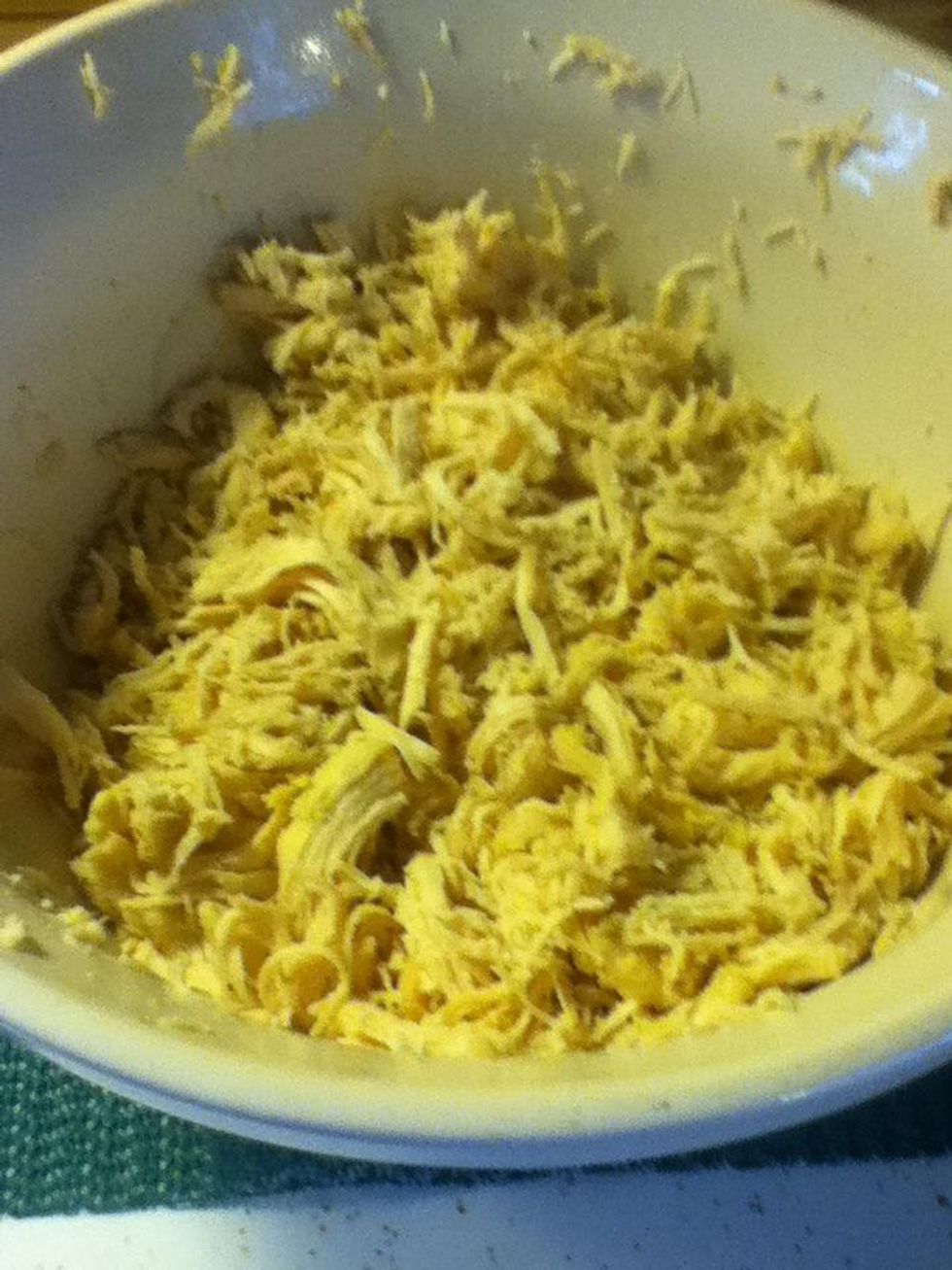 There you have it. Shredded chicken that falls apart ready to be use in many dishes.