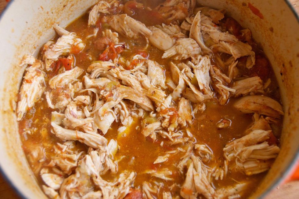 Add the shredded chicken back to the dutch oven and taste for seasoning. If you want you can add a pinch or two more of the seasongs. Let it simmer over low heat until you serve it up. Enjoy...