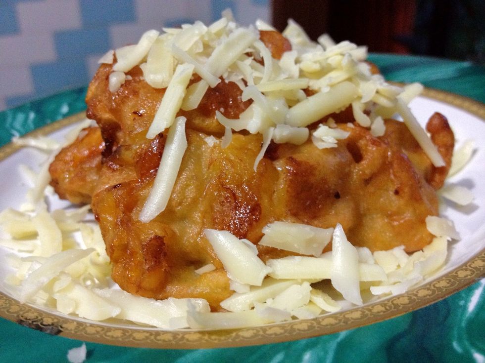 Topped with grated cheddar cheese and serve with a cup of hot tea/coffee (not pictured) ... happy tummy on tea time :) enjoy!