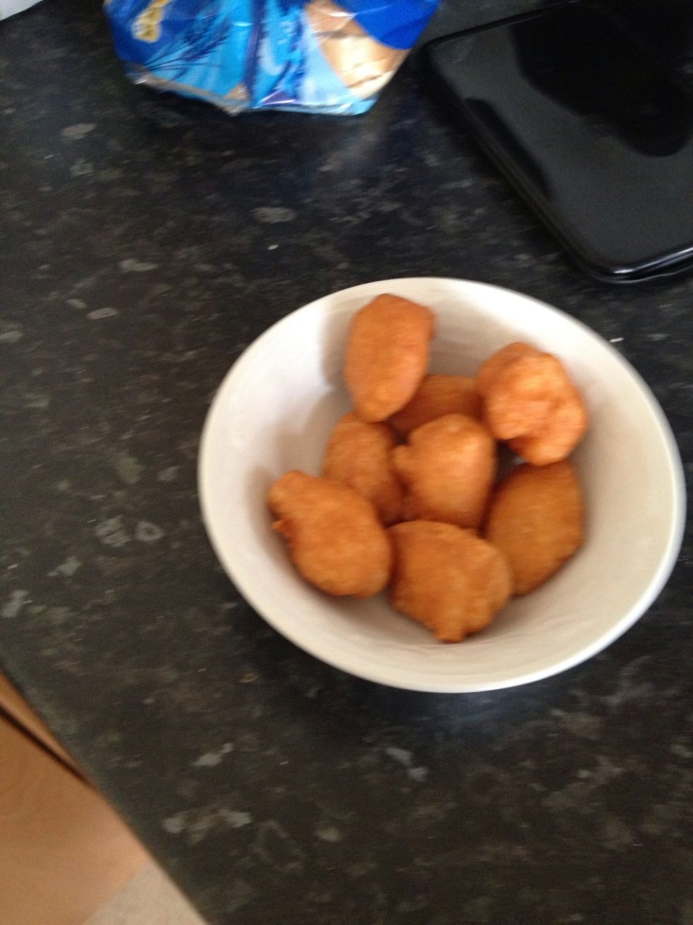 When d oil is hot enuf add d salt and mix properly just before spooning into d oil. U add d salt earlier and dt makes d beans watery. U kno d oil is hot enuf wen get bubbles when u spoon d mixture in.
