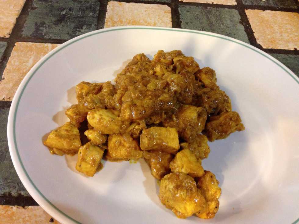 Add cream, water and curry. Use anywhere from 1/2-1 tablespoon depending on your likening.