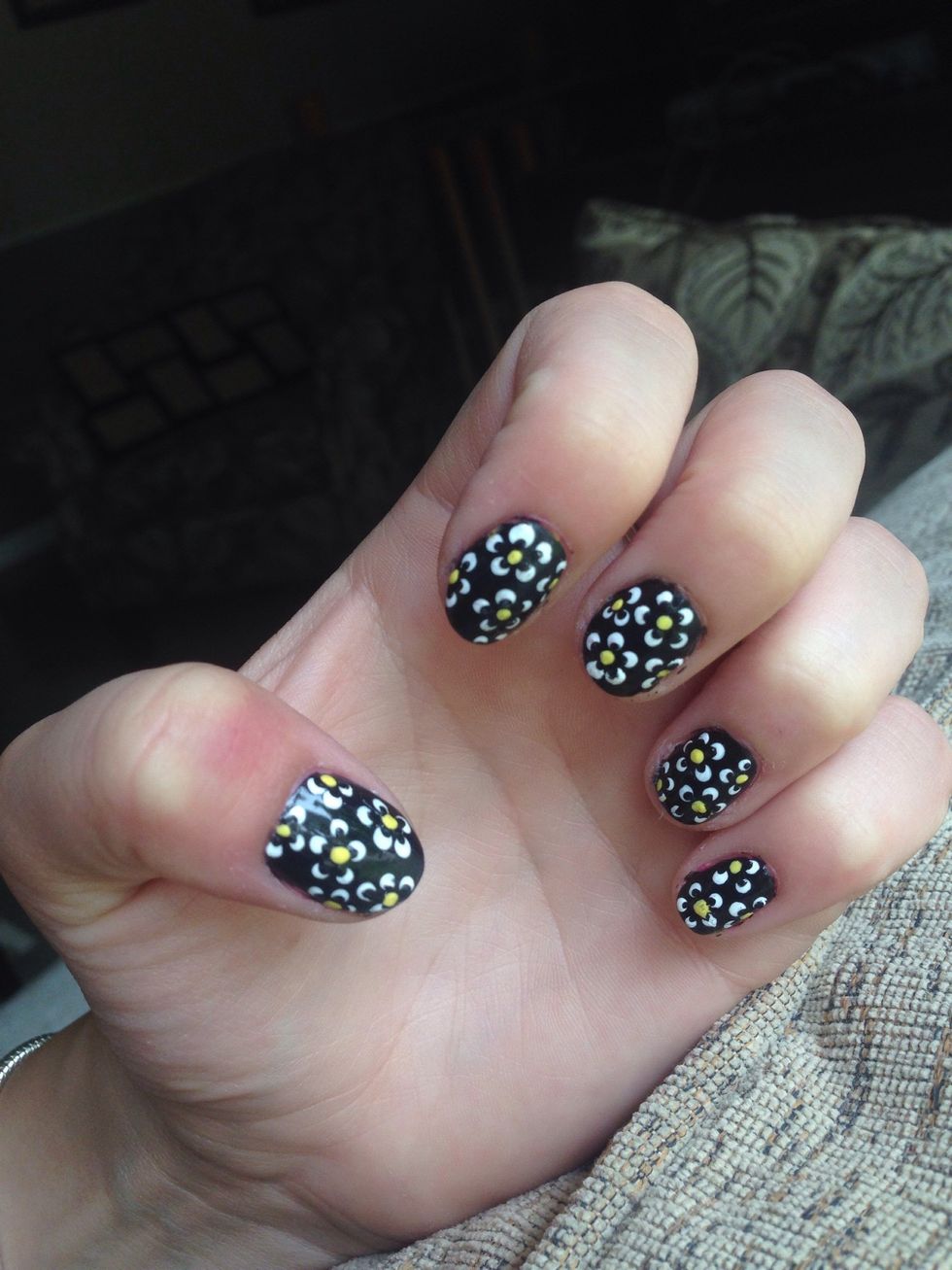 Taking your tooth pick, put small black dots in each circle, making little "c" shapes, all towards the centre of each flower