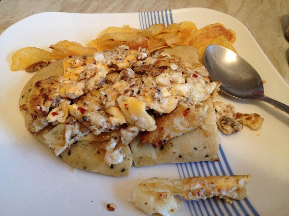 When naan is toasted, add a slice of cheese on top and let the heat melt it!