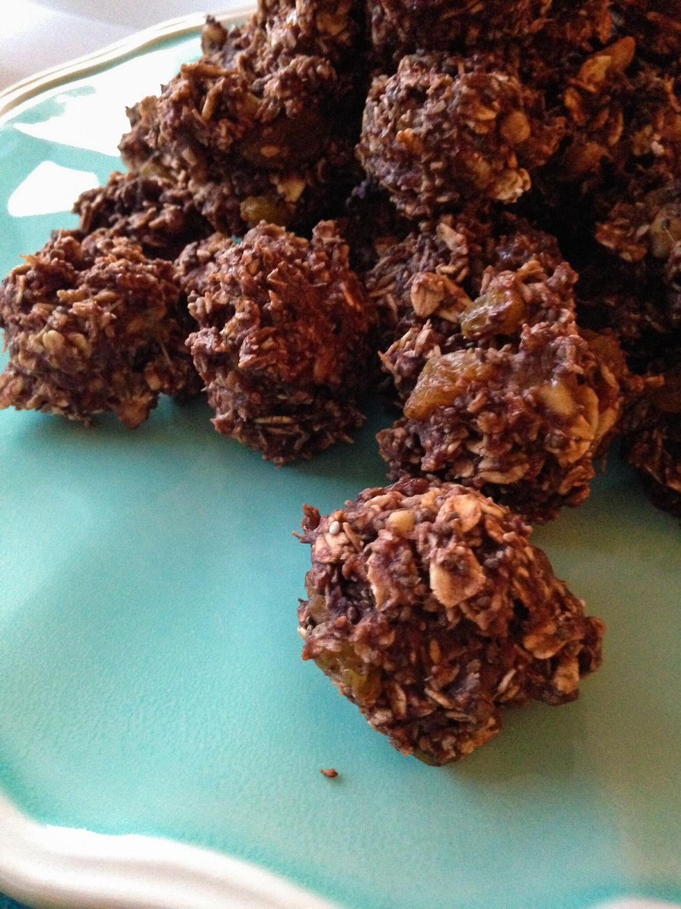 Use your 1 tsp measuring spoon to scoop out bite sized portions into a lined baking sheet. Yields about 34 or 35 bites