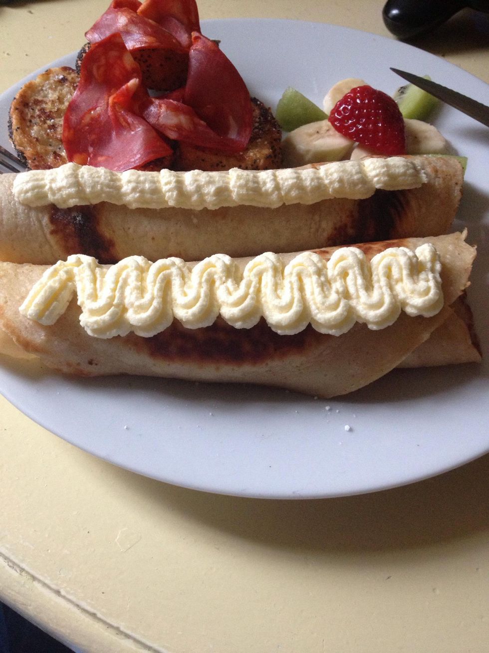 Voila! Now you can enjoy pancakes with a side of fruit and awesome Torrijas (from que rica vida guides)…
