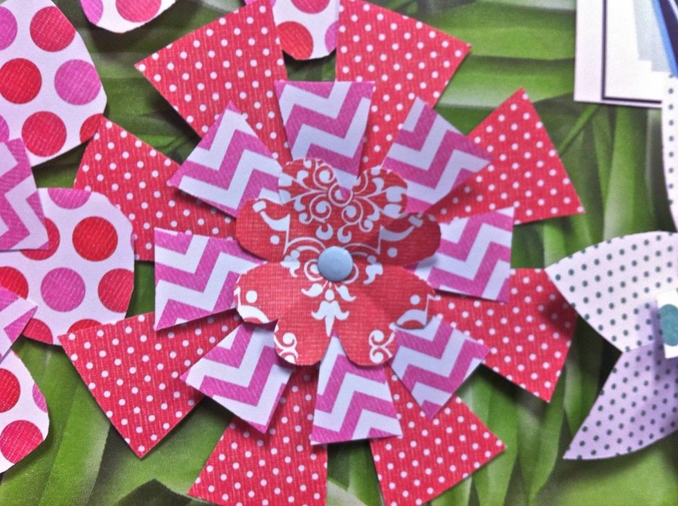 Now it's time to assemble your flower. You can used glue or these colored brads I found at Target.