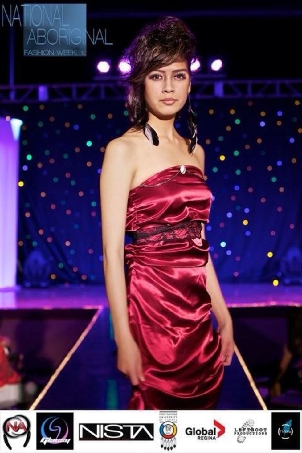 Here's one of my models modeling out my dress. (Backstage actually before the runway)