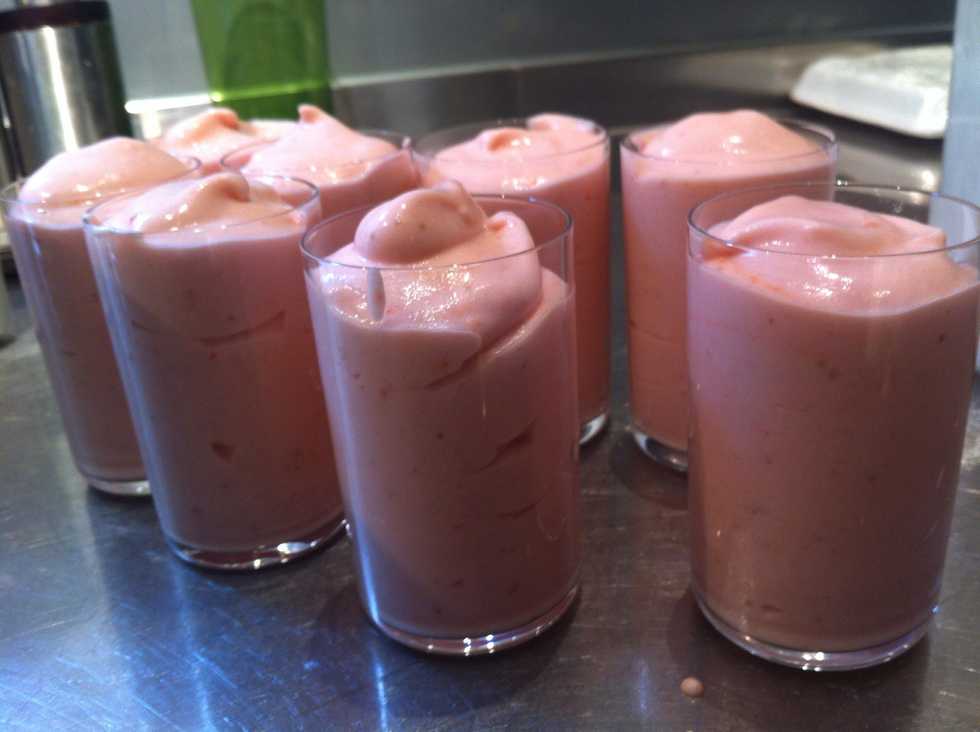 Fold in 1/4 the egg whites to the strawberries and cream mix!