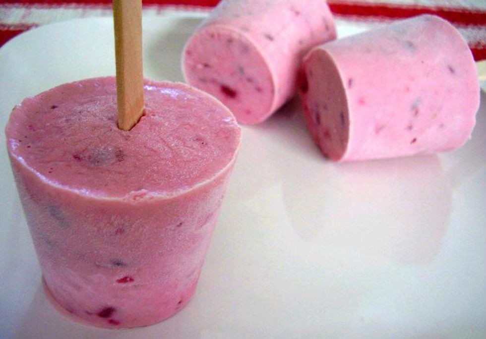 Put your desired yogurt that you want to enjoy after in a tray where you put ice cubes like in the picture with the sticks.