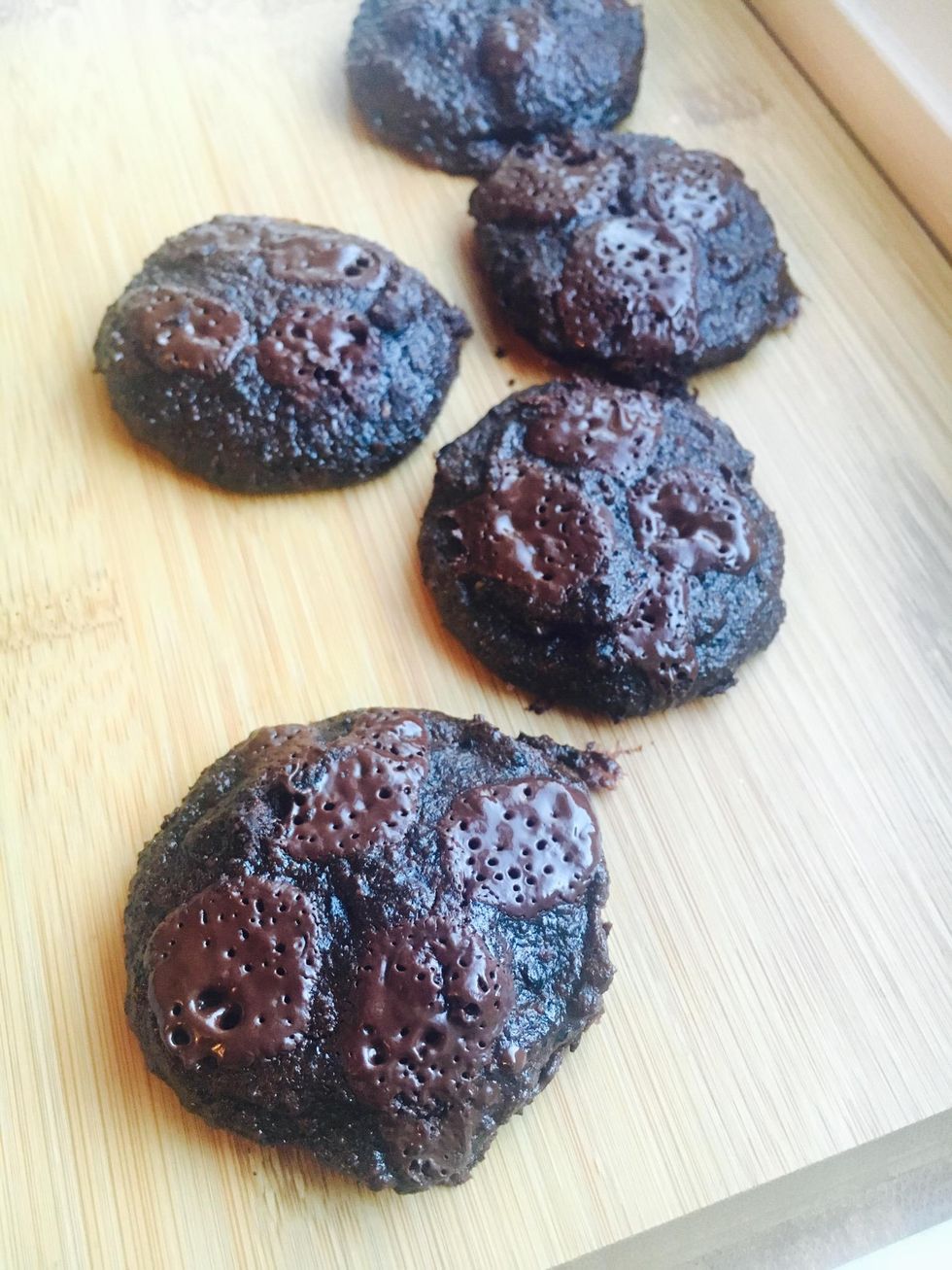 Ingredients: coconut oil(melted), baking powder, black beans, agave sirup, coconut sugar, dark vegan chocolate, chia egg, medjool pitted dates, cacao powder