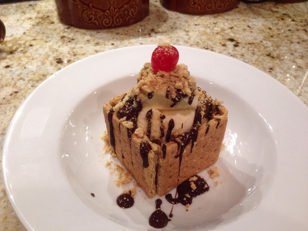 Sprinkle with the crushed grahams and top with a cherry. (Oh my, I forgot the whipped cream!)