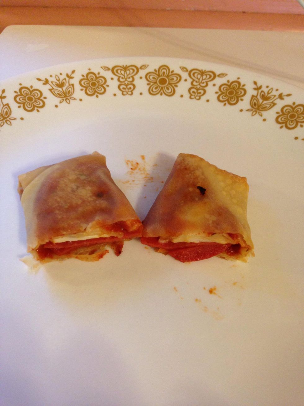 Fold the side corners in and roll. This is my first attempt at using egg roll wrappers so bear with me. 😄