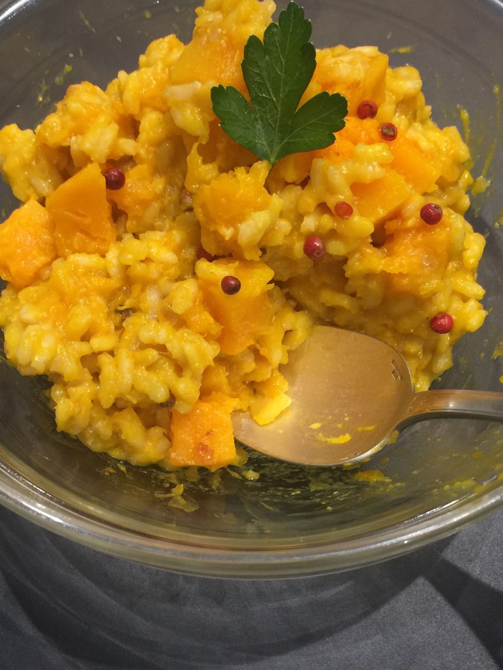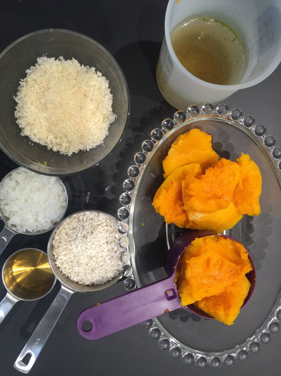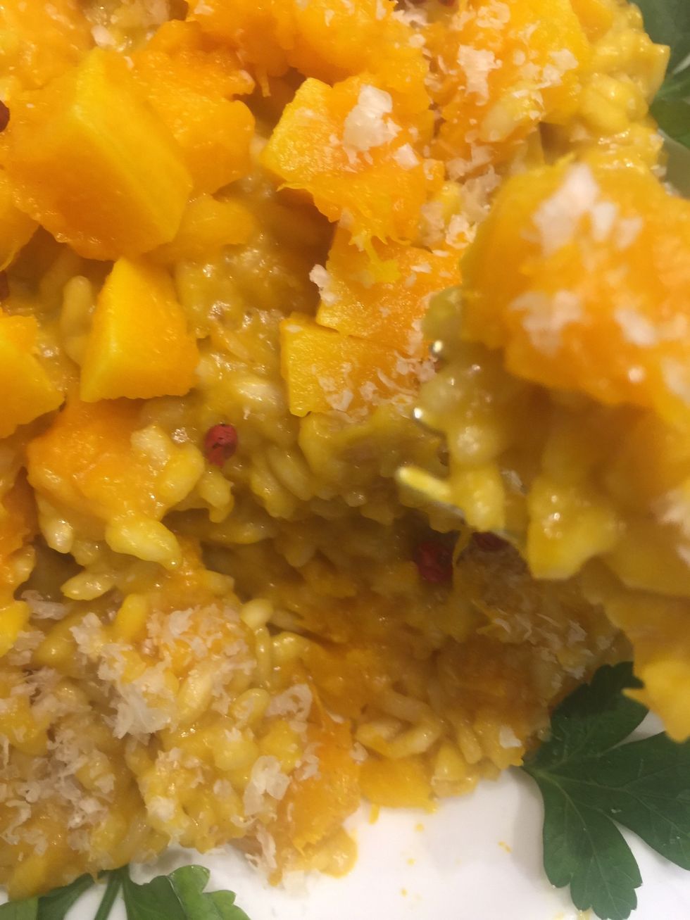 Serve. Add the rest of the grated Parmesan and few pieces of pumpkin. And the red pepper corns