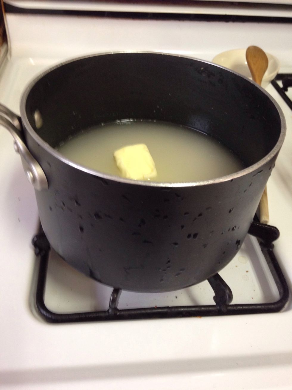Add equal parts water to rice. 2 cups rice= 2 cups water