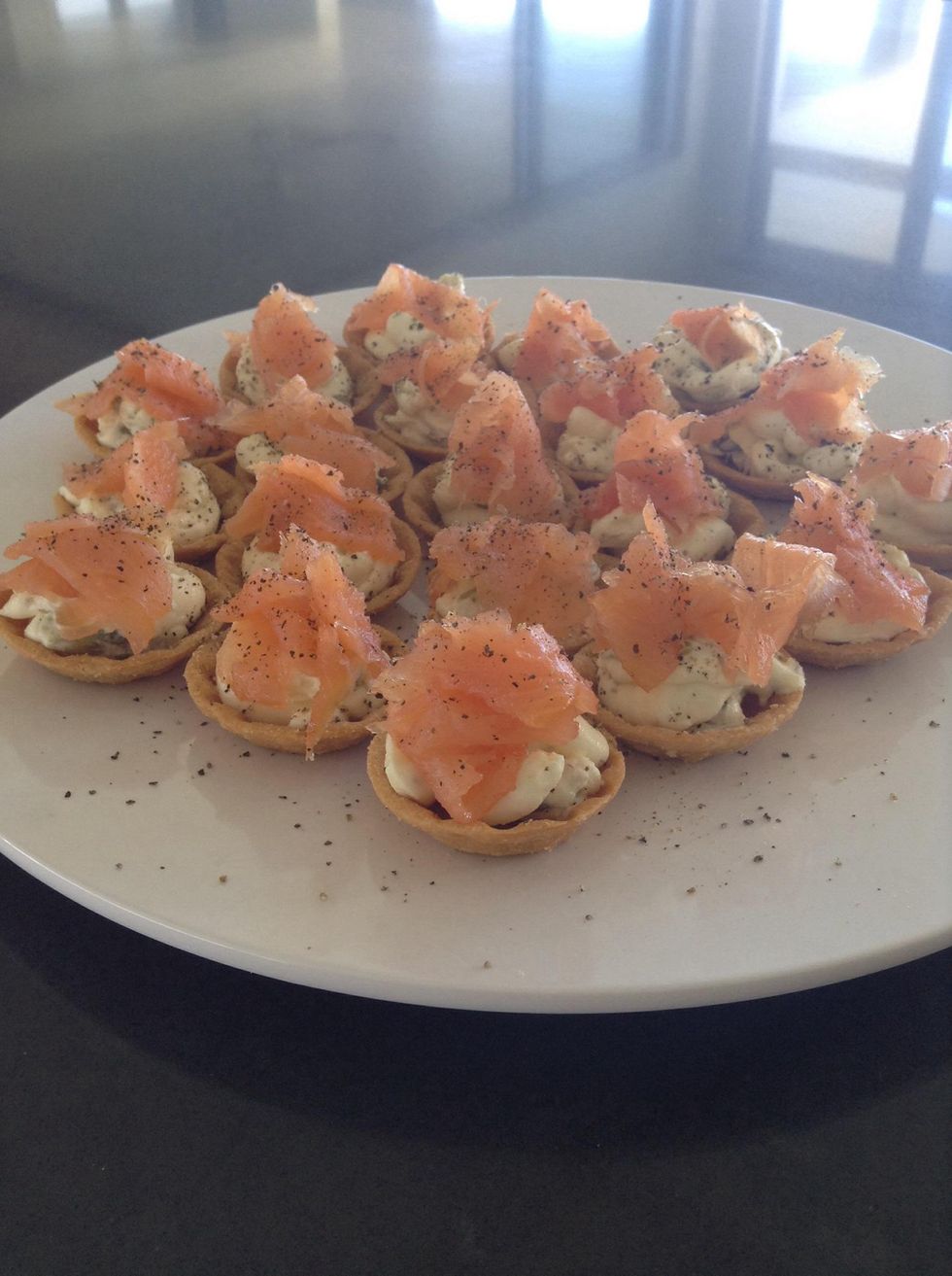 Pipe cream cheese into a cup in the shape of a circle to fill the cup.