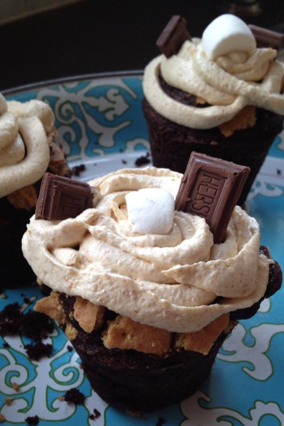 Pour batter into the cupcake pan and crush graham cracker and lay on top of batter gently and insert into the oven