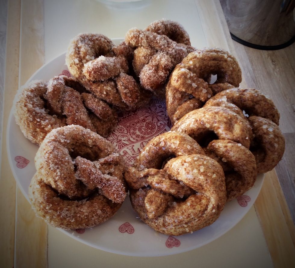 Done! This recipe can be used to make different toppings. The picture above shows cinnamon as well as salted pretzels.