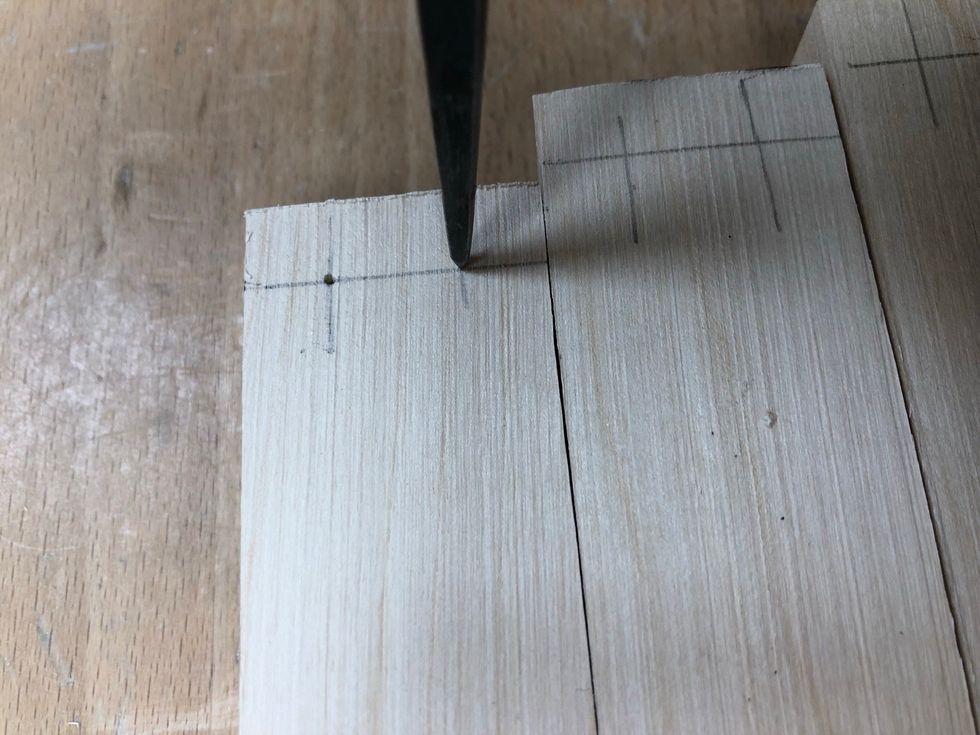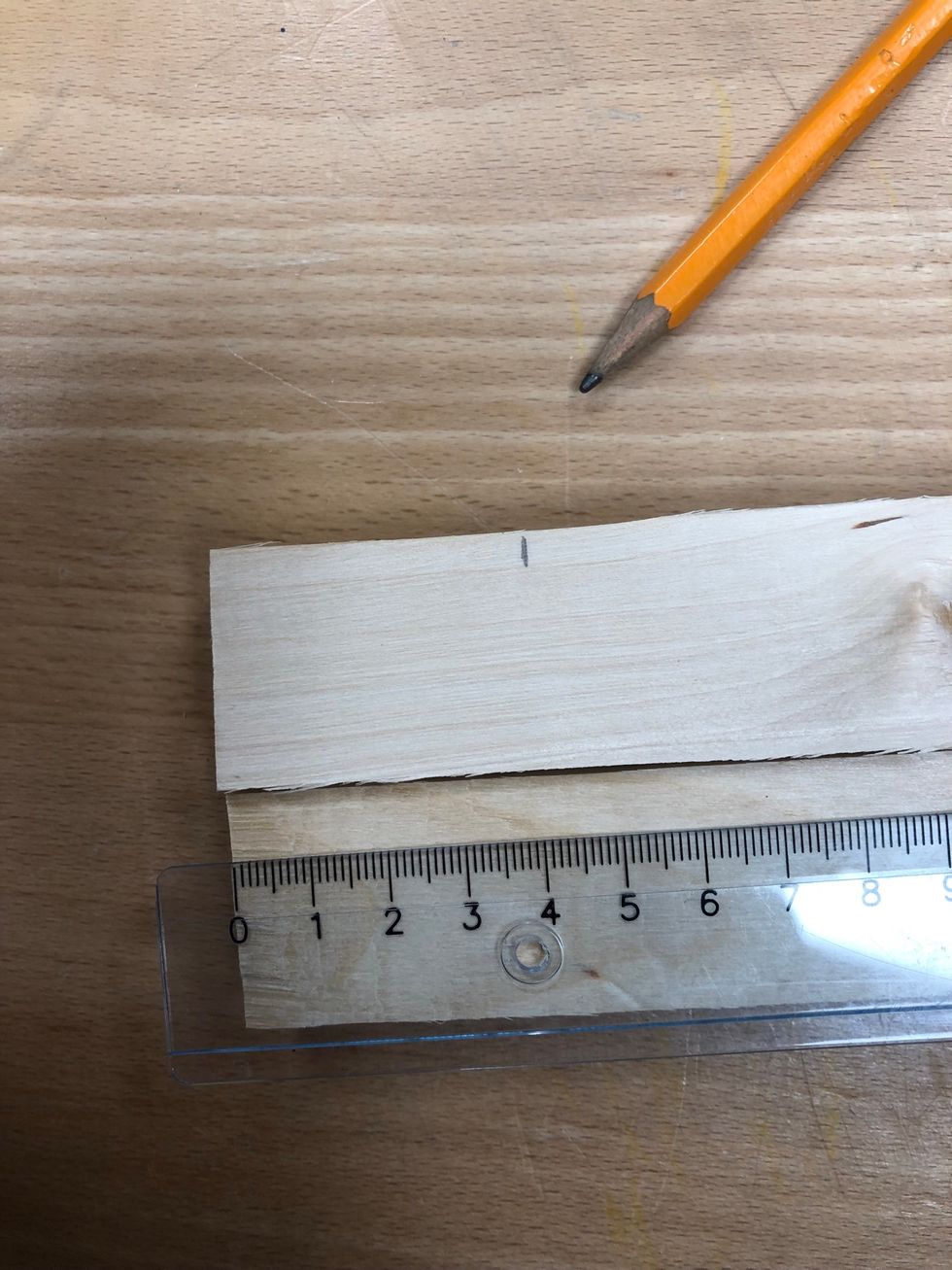 Märk på de tre. 1cm från kanten.