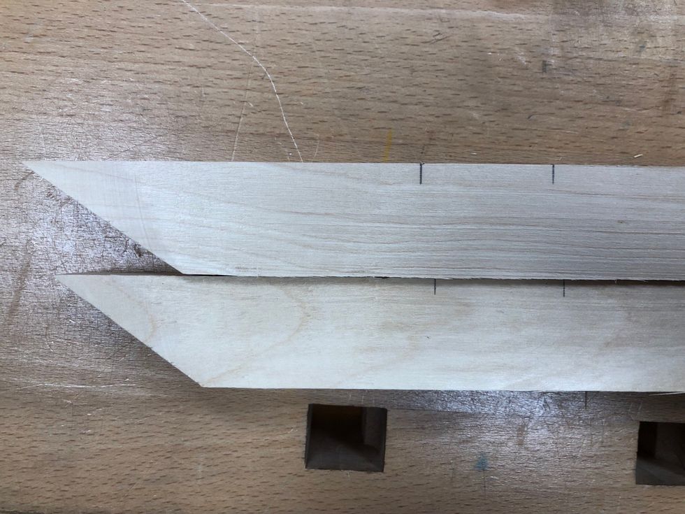 Mät ut var urtaget ska vara på de långa bitarna. Kolla mått på ritning.