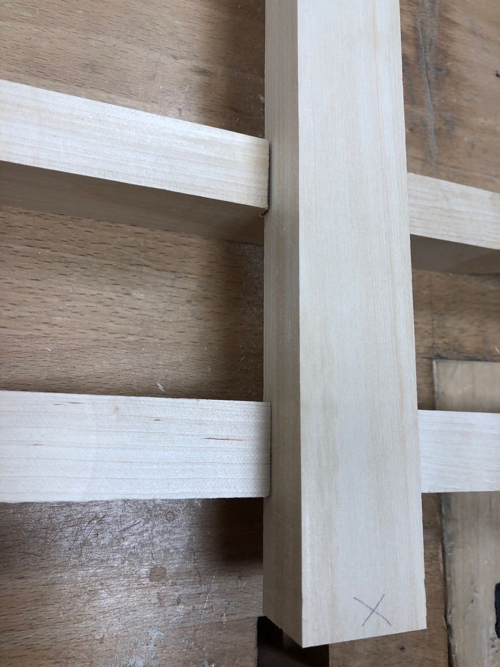 Mät hur tjock en planka är. Markera den med ett x