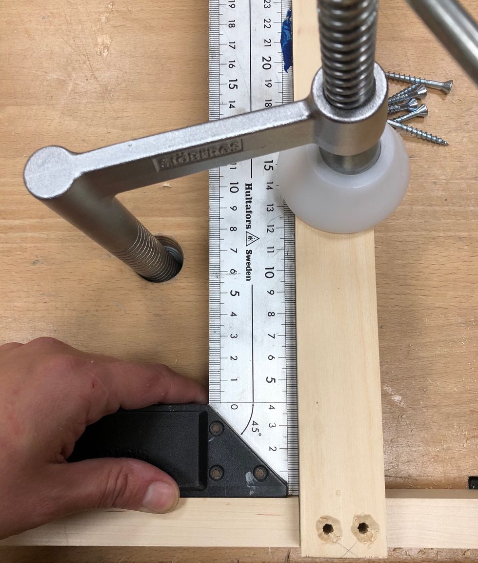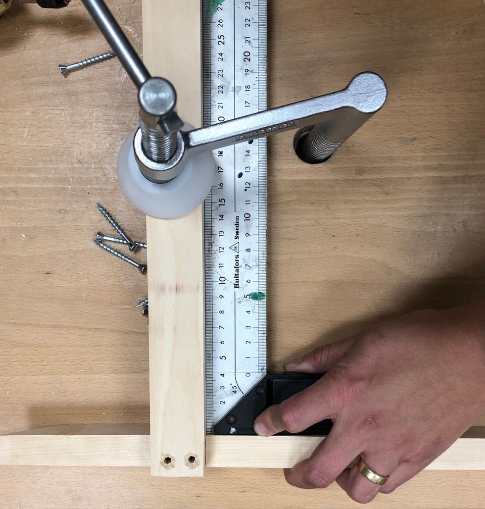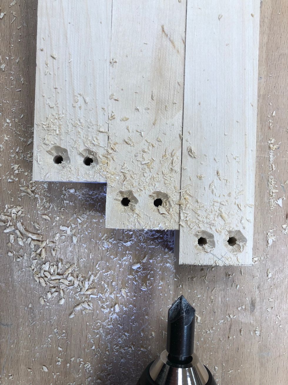Om du är osäker på att borra rakt med handborr maskinen kan du använda pelarborr maskinen. Borra rakt igen. Kolla i dina anteckningar/skisser efter borr dimensionen.