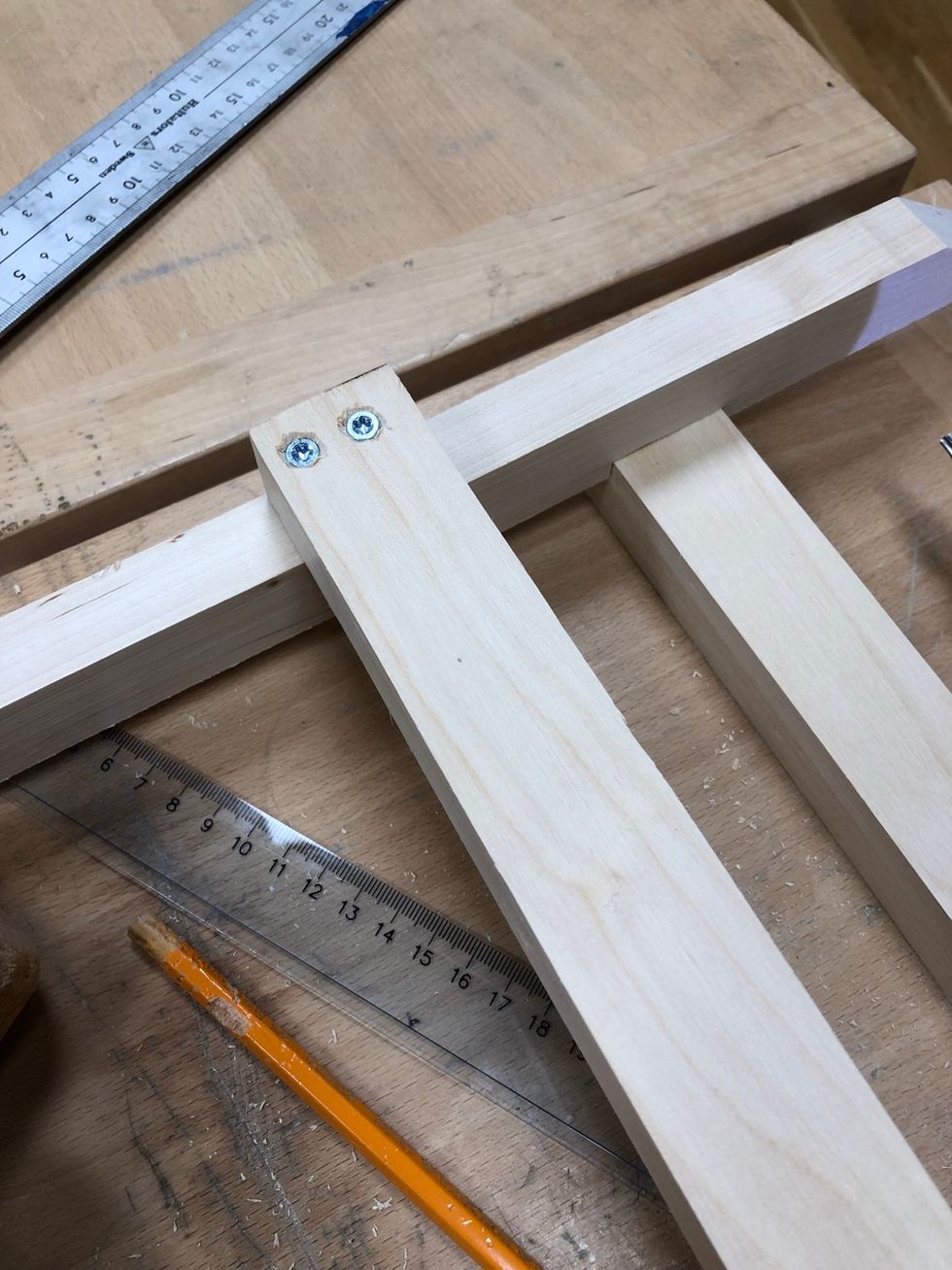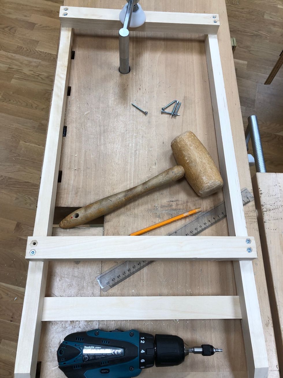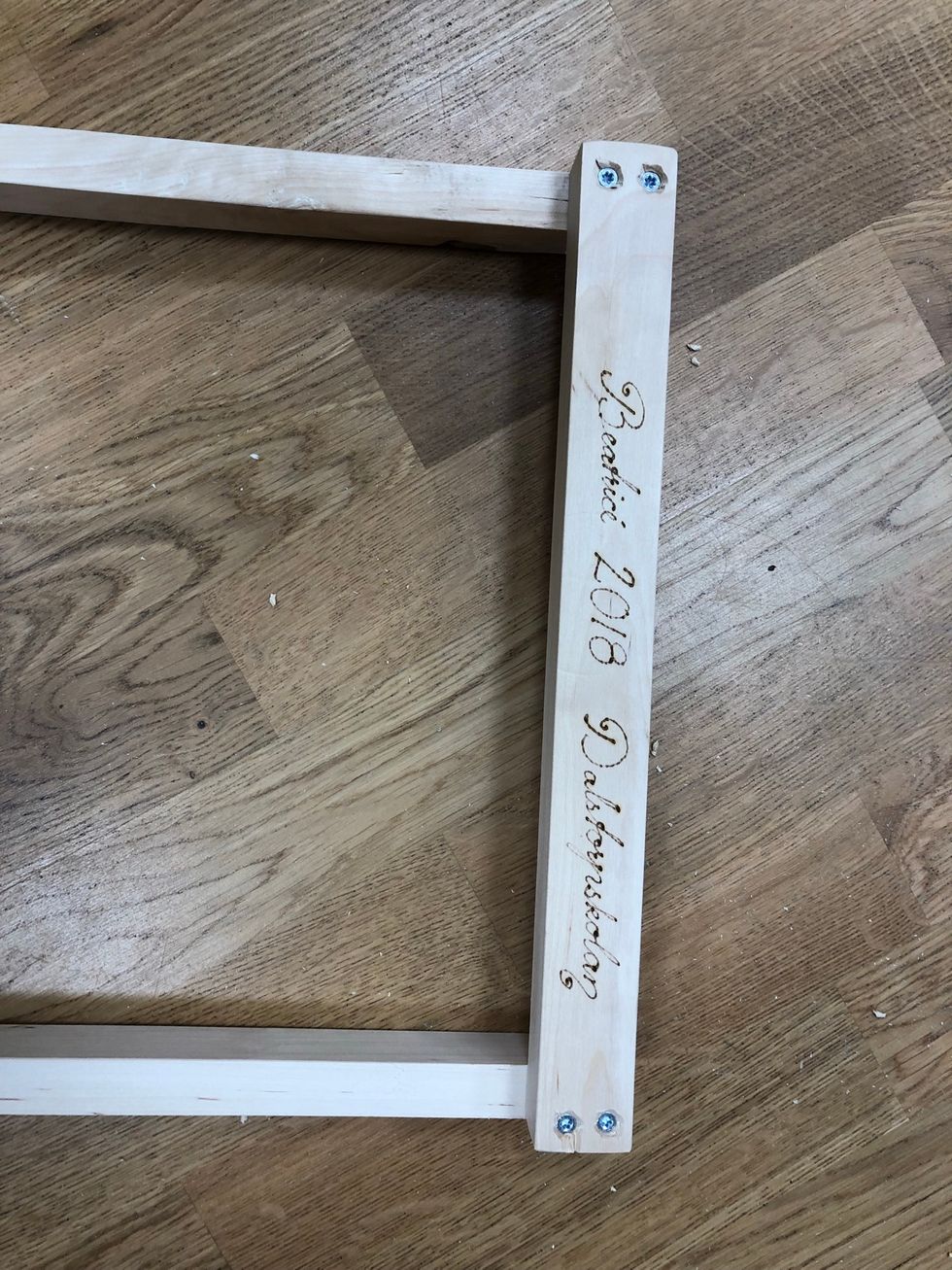 I hörnen behöver du förborra = borra små hål innan du skruvar i skruven. Varför? För att minska risken att plankan spricker när skruven skruvas i.