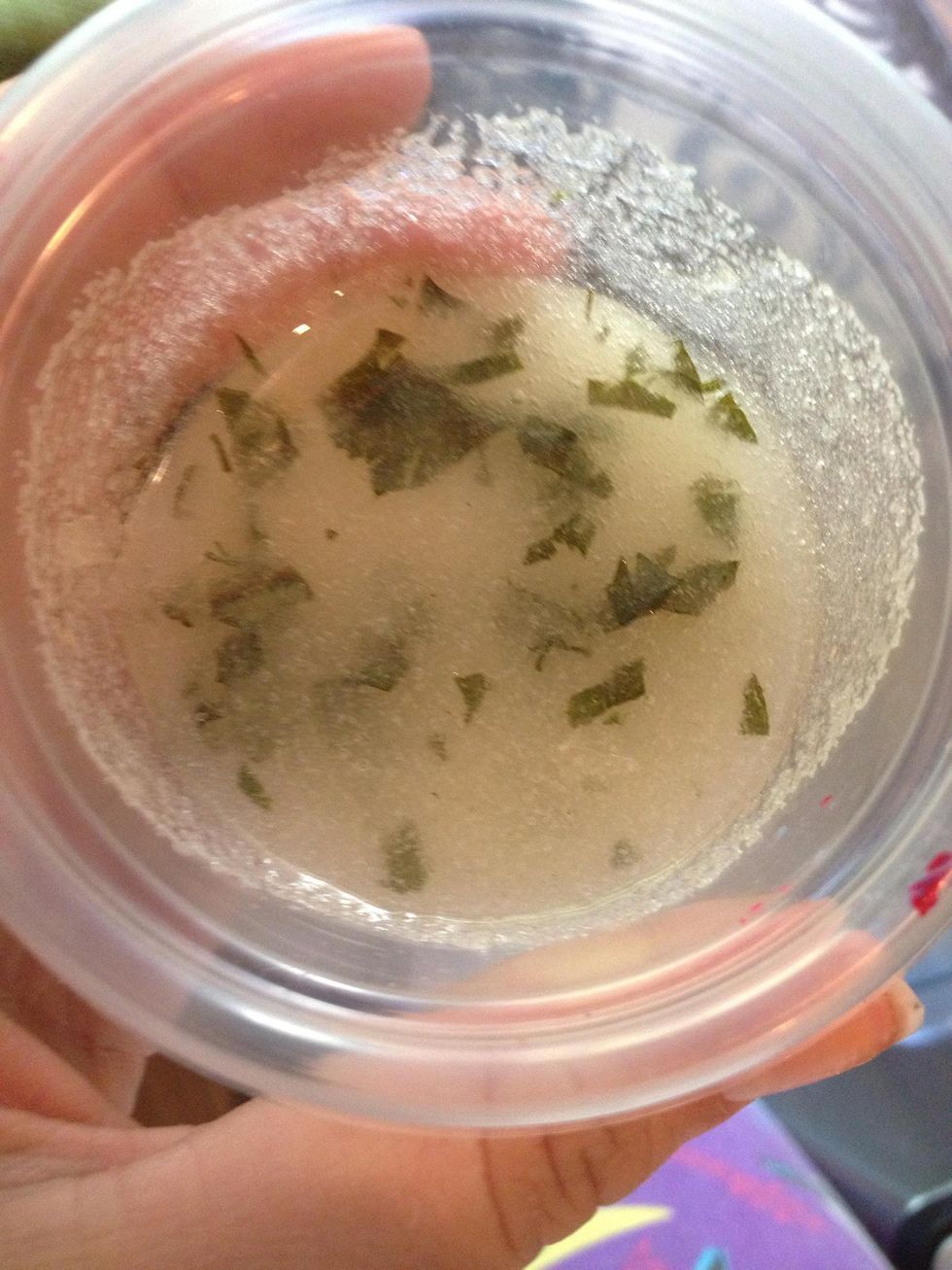 Done! Apply to lips. Rub them together. After about ten minutes, rinse off. Enjoy!