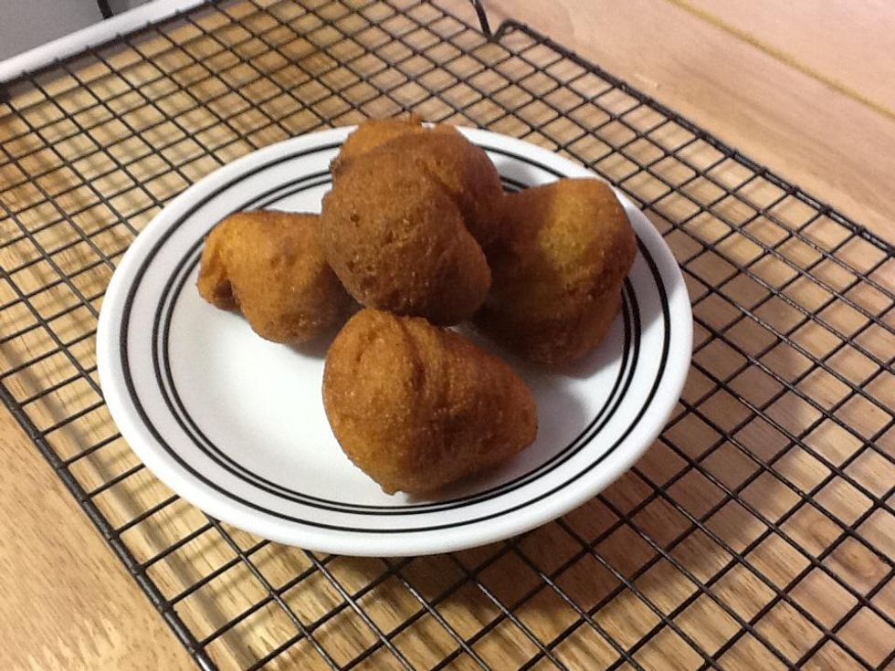 Scoop the batter and drop into oil, do not overcrowd the pan.