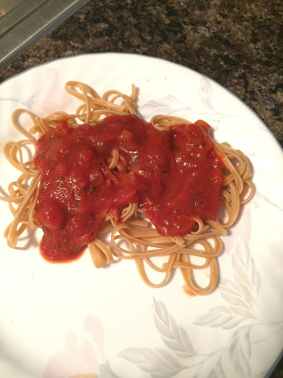 Transfer desired amount of noodles and sauce onto a plate and enjoy! Tip: Can be garnished with parmesan cheese and served with garlic toast or a vegetable.