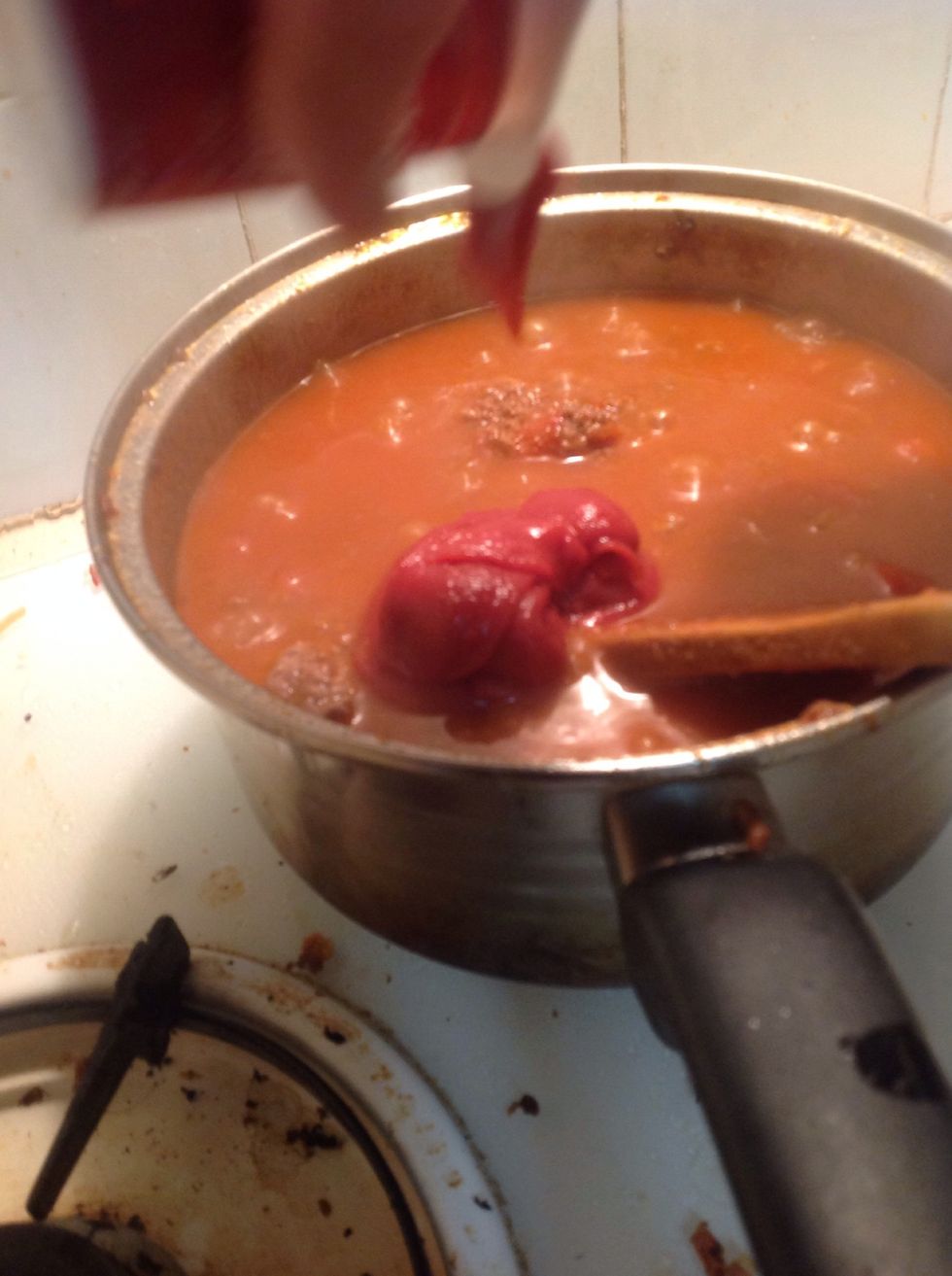 After a good 5 - 10 minutes, add the tomato paste
