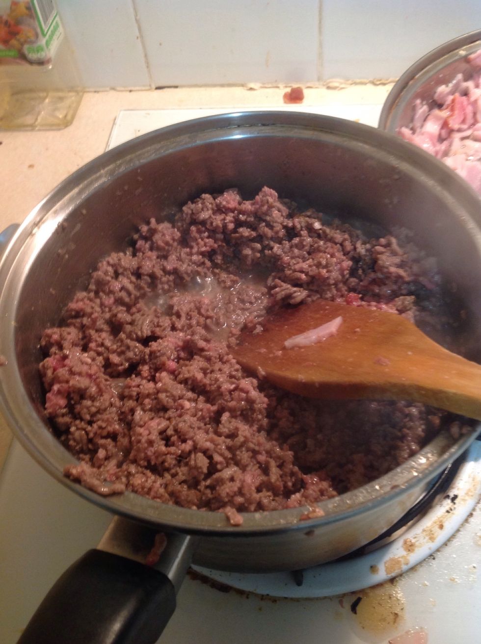 One the mince is all brown, add the canned tomato