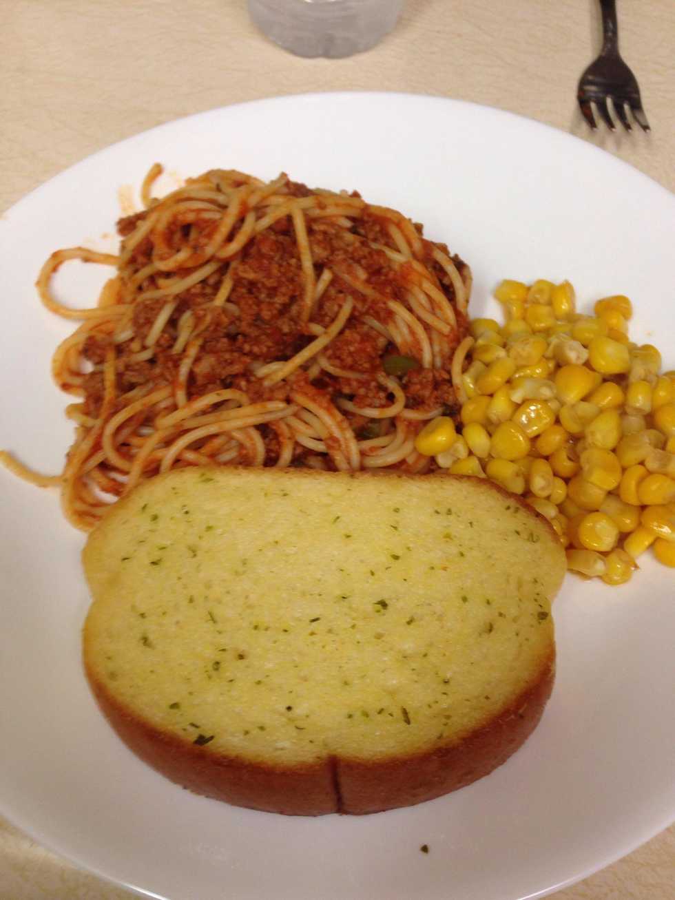 Don't forget your garlic bread and veggies! Enjoy