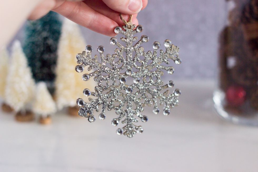 Wait till the snowflake is completely dry. Once dry, apply adhesive rhinestone stickers to the ball points of the snowflake and in the middle. You can be as creative as you want.