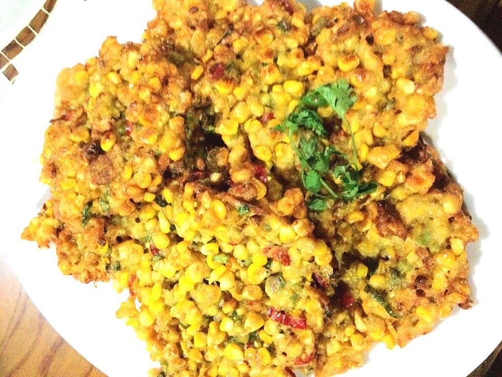 Roughly mashed your corn kernels. Just slightly to make it soft