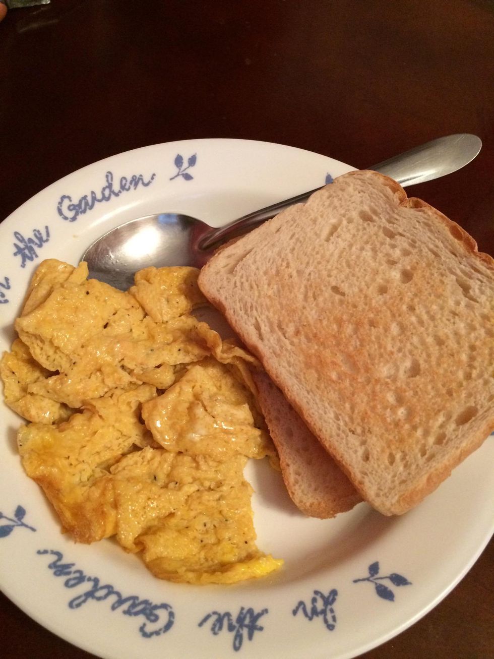 Grab a plate. Put the eggs, toast and your spoon and enjoy!