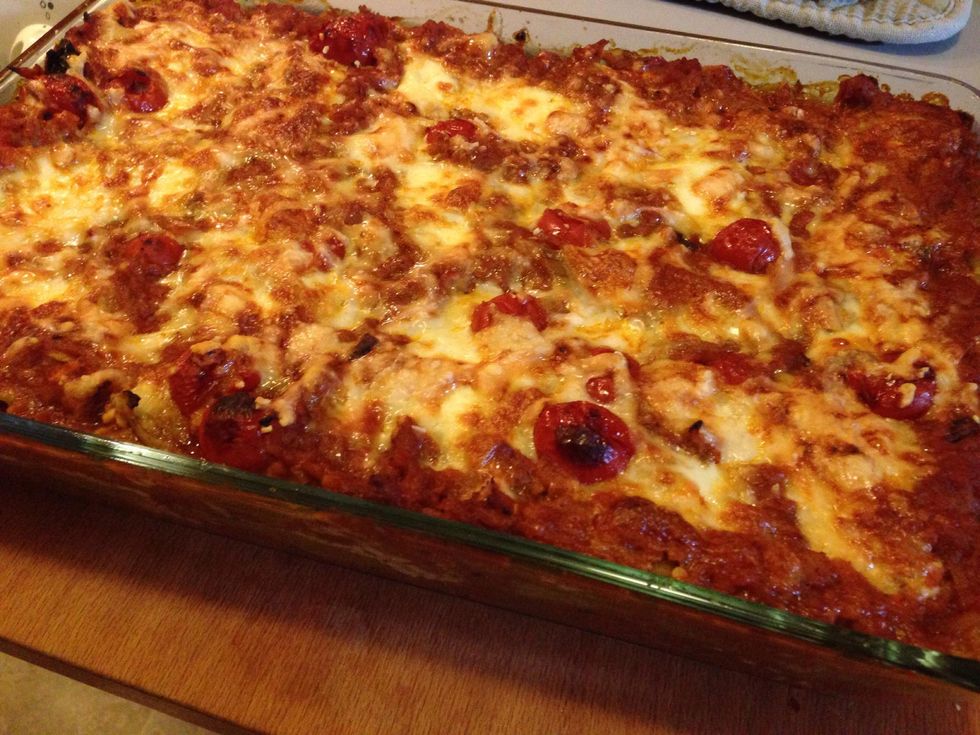 Spread out some of the the sauce at the bottom of an oven dish. On top of the sauce add lasagna noodles, cottage cheese, grated cheese and then another layer of sauce e.t.c.