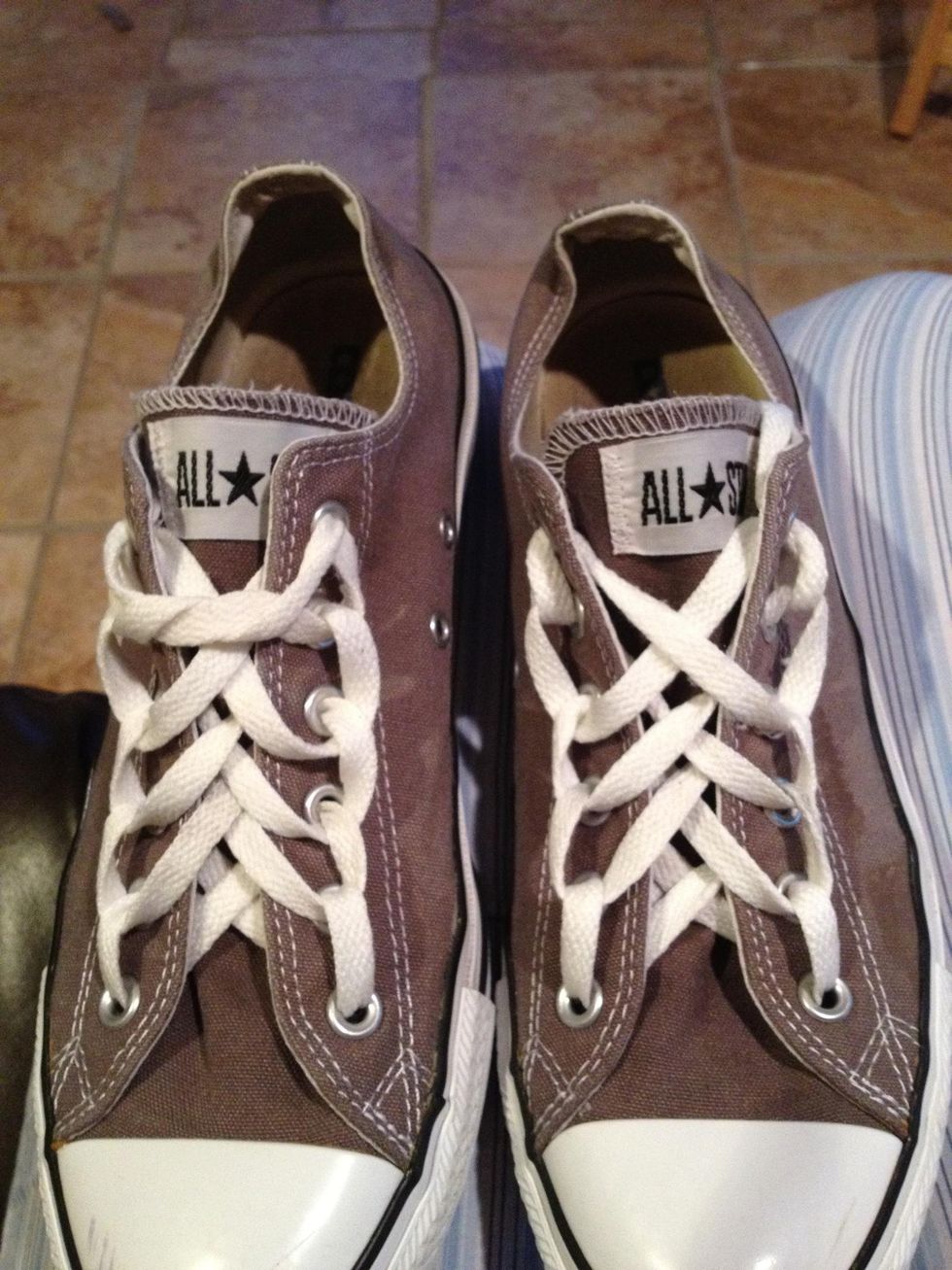 Pass one end of the lace down through the first eyelet (not crossing), over to under.