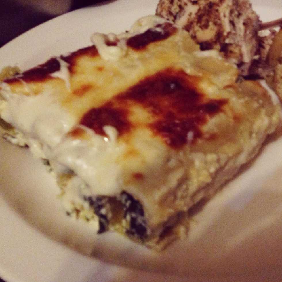 Bake the cannelloni at 180 C for 40 minutes. Turn the grill on for the last 5 minutes to brown the top of the pasta.