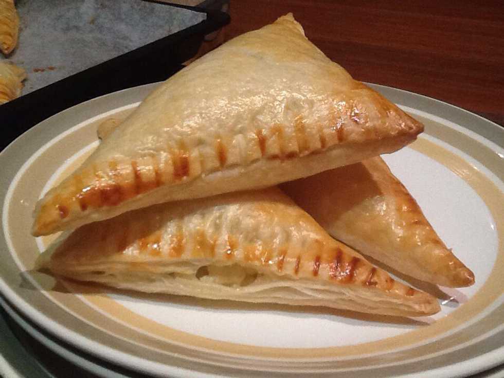 Put about a tablespoon of the ricotta mix onto the pastry and fold over one side to make a triangle.