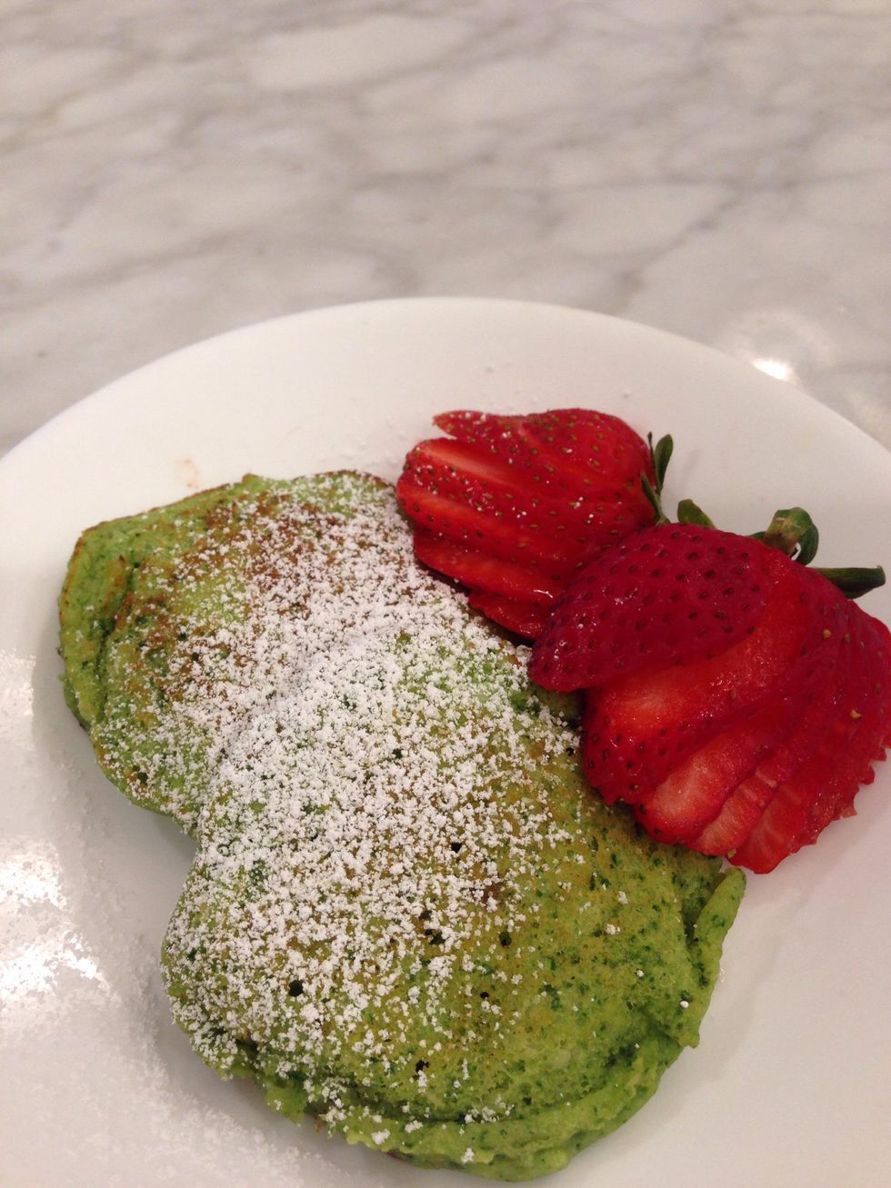 Purée banana, yogurt, vanilla,spinachBeat egg and maple syrupAdd all purée mixture and all dry ingredients.MixHot skilletFlipServe