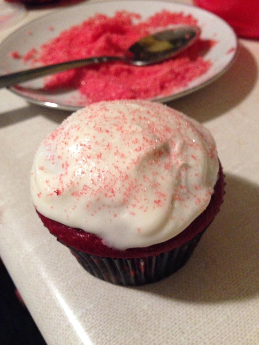 Get some sugar (recommended is 1/4 cup for each color). But I used whatever amount I needed.