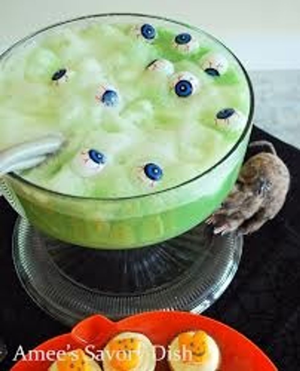 what u will nedd 2 liters of sprite or 7 up,two difrent flavers of shurbet ice cream,spooky body parts,lental and bowland cups