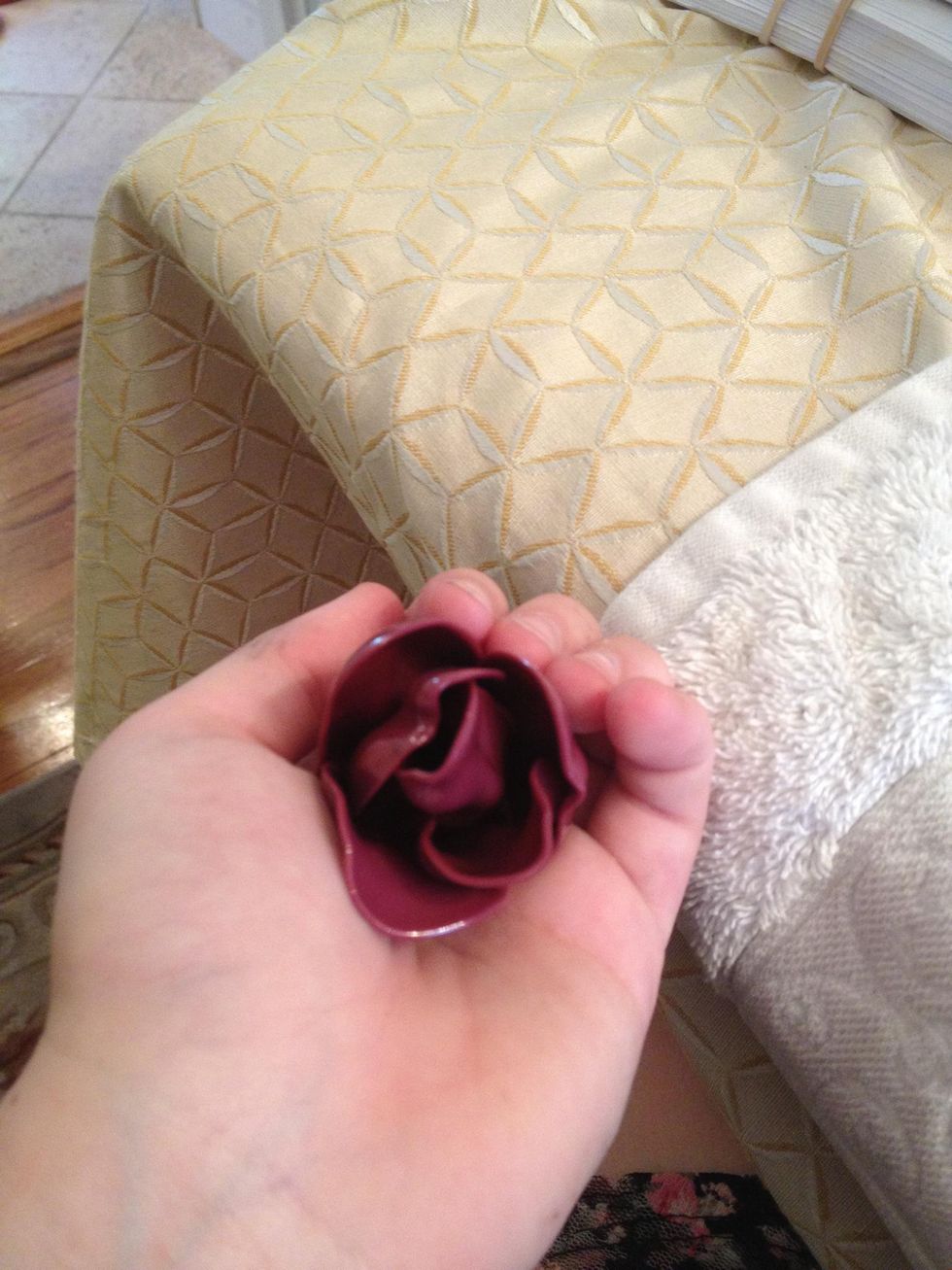 Melt the spoon handle if you need extra plastic to help hold the rose together